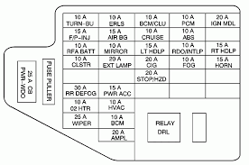 I have a 2001 chevy cavalier no four ways no turn signals no brake lights changed colum switch neon relay under hood checked fuses no power to. Look on the cover of the fuse box to see if its labeled. My horn is not working. Cigar lighter, fog lamp, horn, stop lamp, rear defog, power acc. Upgrade your engine compartment with this carbon fiber fuse box cover.